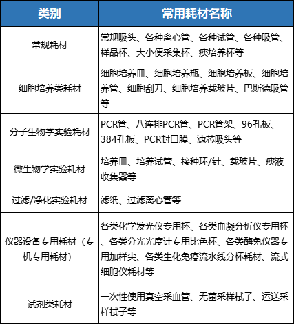 實驗耗材是專業(yè)院校或醫(yī)療單位的檢驗檢測部門、第三方的獨立檢驗檢測機構以及其他的實驗室開展實驗工作的常用物品。主要是指完成檢驗、實驗項目過程中的標本采集裝置、標本盛放裝置以及實現(xiàn)標本檢測的提取、分杯、比色等工作的裝置;其最本質的特點就是一次性使用,主要為一次性塑料制品。