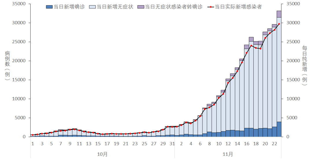 31個?。ㄗ灾螀^(qū)、直轄市)和新疆生產(chǎn)建設(shè)兵團報告新增無癥狀感染者29840例,其中境外輸入186例,本土29654例;