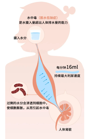 水中毒(water intoxication),又稱(chēng)稀釋性低鈉血癥,指當(dāng)機(jī)體所攝入水總量大大超過(guò)了排出水量,以致水分在體內(nèi)潴留,引起血漿滲透壓下降和循環(huán)血量增多。臨床上較少發(fā)生。其癥狀取決于水過(guò)多的速度和程度,可分為急性水中毒和慢性水中毒兩類(lèi)。程度較輕者,停止水分?jǐn)z入,排除體內(nèi)多余水分后,即可糾正,嚴(yán)重者可導(dǎo)致神經(jīng)系統(tǒng)永久性損傷或死亡。