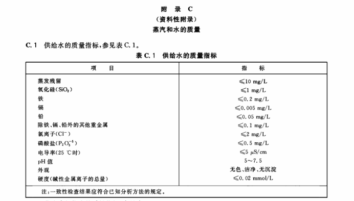 滅菌用水除硬度要求外,還有其他指標要求,例如水中的鐵、鎘、鉛等重金屬雜質、pH值、電導率等,詳見以下附表: