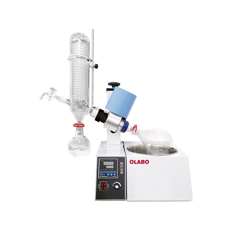 作為蒸餾的熱源,常配有相應(yīng)的恒溫水槽。通過電子控制,使燒瓶在最適合速度下,恒速旋轉(zhuǎn)以增大蒸發(fā)面積。通過真空泵使蒸發(fā)燒瓶處于負(fù)壓狀態(tài)。蒸發(fā)燒瓶在旋轉(zhuǎn)同時(shí)置于水浴鍋中恒溫加熱,瓶?jī)?nèi)溶液在負(fù)壓下在旋轉(zhuǎn)燒瓶?jī)?nèi)進(jìn)行加熱擴(kuò)散蒸發(fā)。旋轉(zhuǎn)蒸發(fā)器系統(tǒng)可以密封減壓至 400~600毫米汞柱;用加熱浴加熱蒸餾瓶中的溶劑,加熱溫度可接近該溶劑的沸點(diǎn);同時(shí)還可進(jìn)行旋轉(zhuǎn),速度為50~160轉(zhuǎn)/分,使溶劑形成薄膜,增大蒸發(fā)面積。此外,在高效冷卻器作用下,可將熱蒸氣迅速液化,加快蒸發(fā)速率。