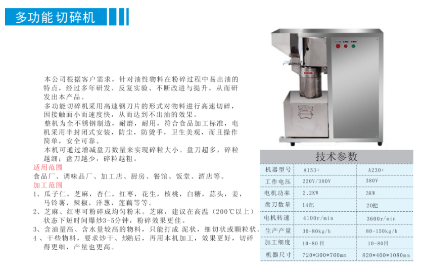 A230多功能切碎機接觸面小速度快,從而達到不出油的效果