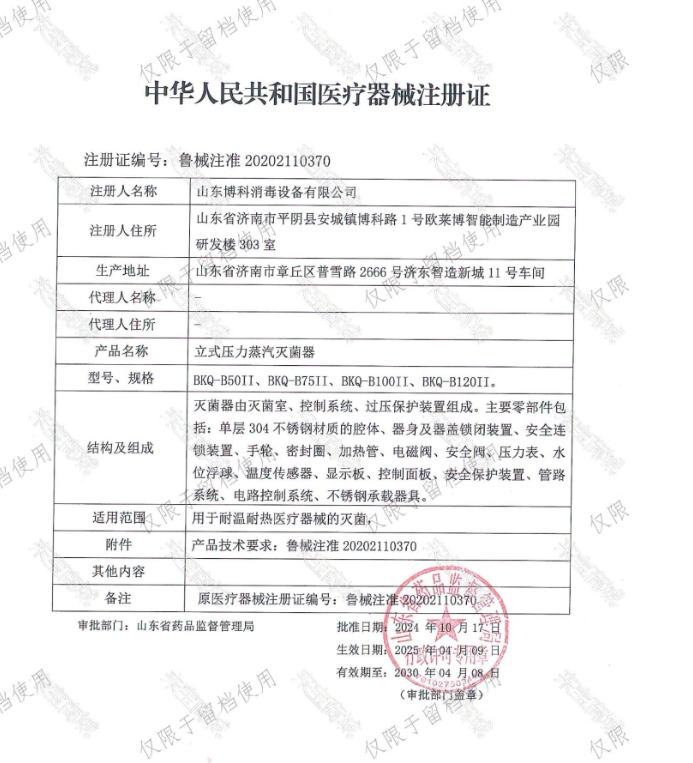 所屬類目:II類:11-01濕熱消毒滅菌設(shè)備批準(zhǔn)文號:魯械注準(zhǔn)20202110370