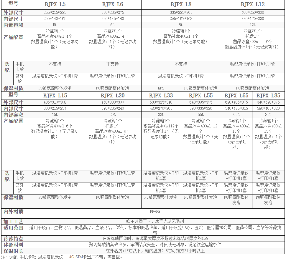 冷藏箱1個(gè),托盤(pán)1個(gè),蓄晶冰盒400ml . 6個(gè)數(shù)顯溫度計(jì)1個(gè)(無(wú)記錄功能)
