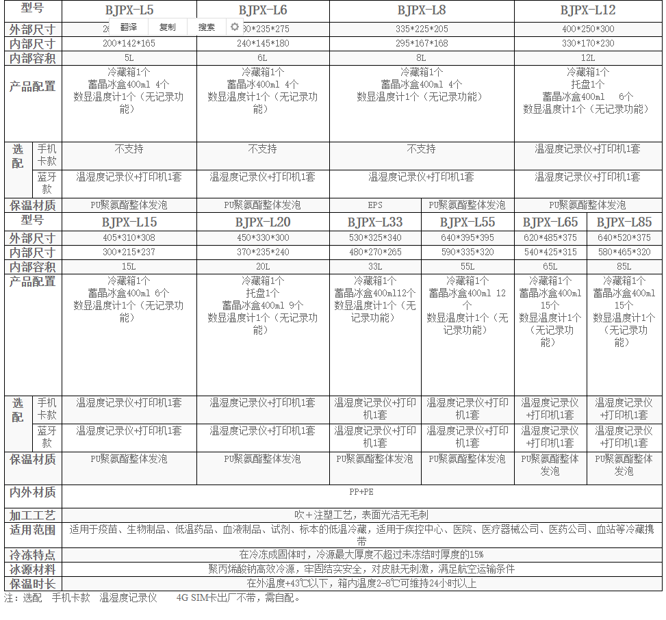在外溫度+43℃以下,箱內(nèi)溫度2-8℃可維持24小時以上